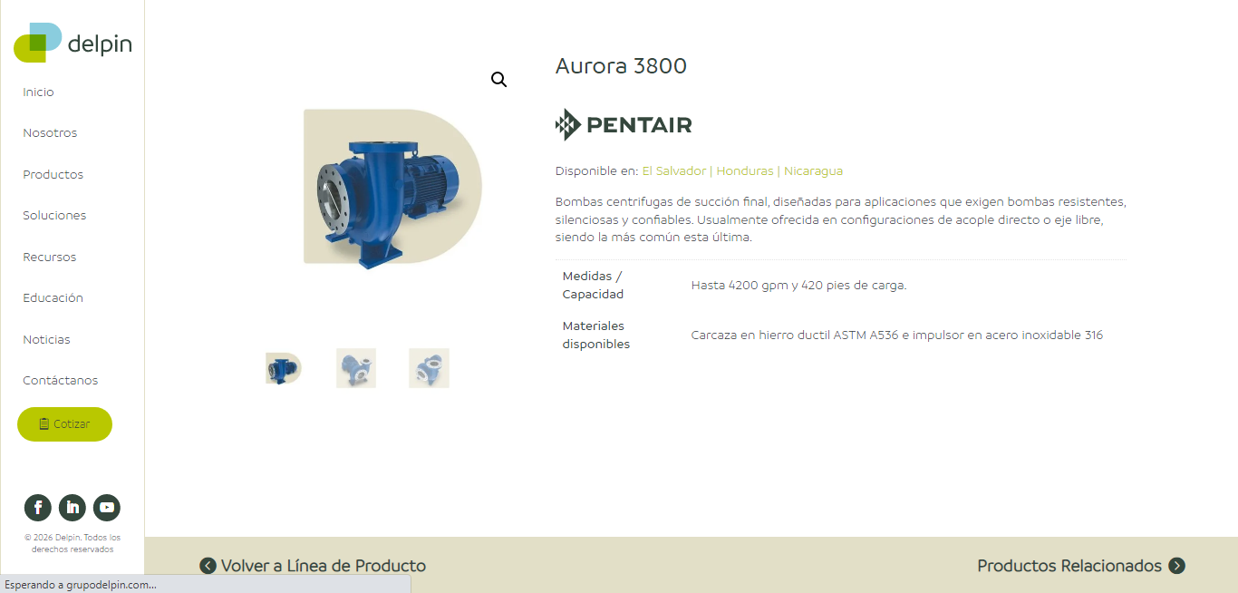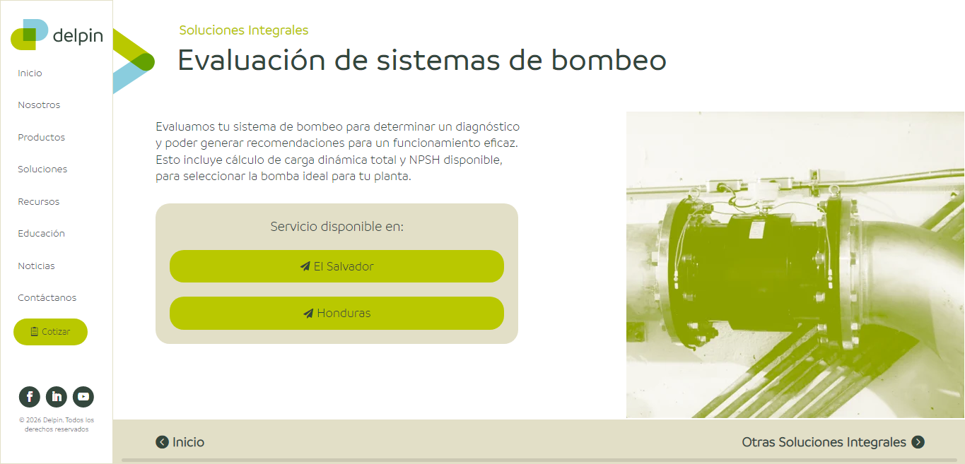 Delpin is a leading holding company in Central America (with a presence in El Salvador, Honduras, and Nicaragua) specializing in the engineering, marketing, and maintenance of industrial equipment such as pumps, valves, motors, instrumentation, and piping. With more than 30 years of experience, they offer comprehensive solutions, including energy efficiency and automation audits, supporting various industrial sectors.